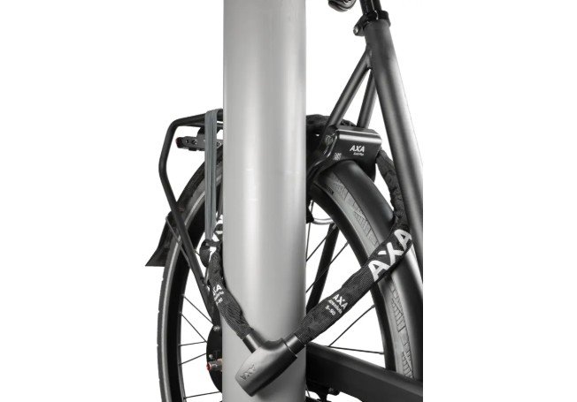 De Absolute is 110 cm lang, hierdoor kan je je fiets makkelijk aan een paal of hek vastmaken. Hij heeft een automatische click-in functie. Dit betekent dat je bij het afsluiten het uiteinde in de slotkop klikt. Je hoeft de sleutel niet te draaien om het slot te sluiten. De diameter van de gehard stalen schakels is 5 mm. Verder zit er een sterke polyester hoes om de ketting die ervoor zorgt dat er geen krassen op je fiets komen.