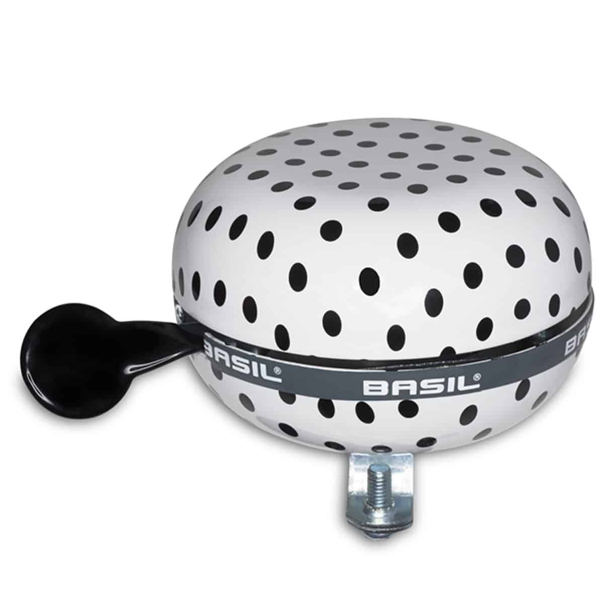 Basil Big Bell Polkadot. Ding Dong fietsbel, 80mm, White/Black Dots.