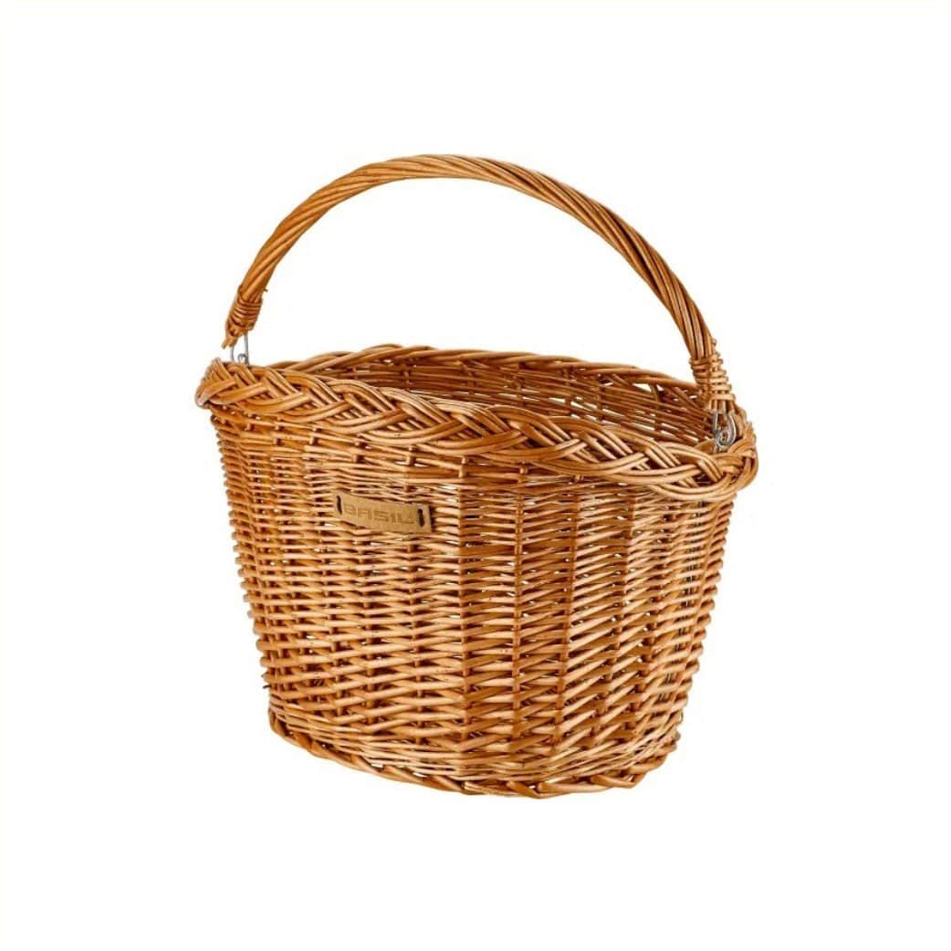 Met de Basil Detroit haal je een naturel gelakte fietsmand in huis voor voorop of achterop een damesfiets.. Je bevestigt de fietsmand eenvoudig met dubbele haken aan het stuur of de bagagedrager van je fiets. De ovalen fietsmand is onmisbaar bij het doen van boodschappen. Ga je regelmatig op de fiets naar de markt of winkel? Dan komt deze rieten mand goed van pas, want dankzij het hengsel neem je de mand gemakkelijk overal mee naartoe.. Natuurlijk is de mand ook ideaal bij het maken van een recreatieve fietsrit. Je kunt er gemakkelijk je lunchpakketje of andere fietsbenodigdheden in kwijt. Het is maar net wat je er zelf mee wilt.