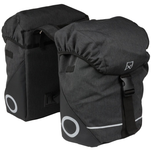 De Beck Organic is gemaakt van water- en vuilafstotend bisonyl. De klep van de tas sluit met twee handige klikgespen. Het ruime hoofdvak wordt bij elkaar gehouden door een band met een klikgesp. De dubbele fietsas is voorzien van harde binnenplaten voor extra stevigheid. Daarnaast heeft de tas een reflecterend Beck-logo op de zijkanten, voor een goede zichtbaarheid in het donker. De brug die de twee tassen met elkaar verbindt is open, zodat u bij uw snelbinders kunt.