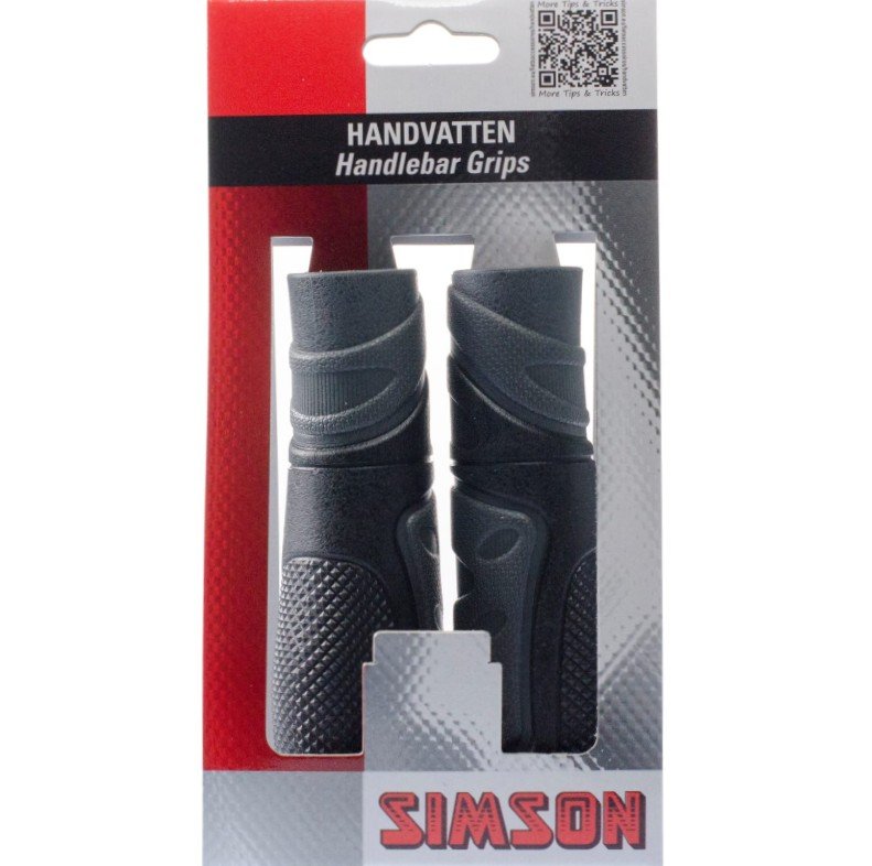 Simson Handvatten Full grip met totale gripverdeling. De ultrazachte uitvoering geeft optimaal comfort aan de handen. De handvatten zijn geschikt voor vrijwel alle fietsen met of zonder een gripshift versnelling. Voor fietsen met een gripshift versnelling kunnen de handvatten ingekort worden naar 92 mm door deze op maat af te snijden op de snijlijn.