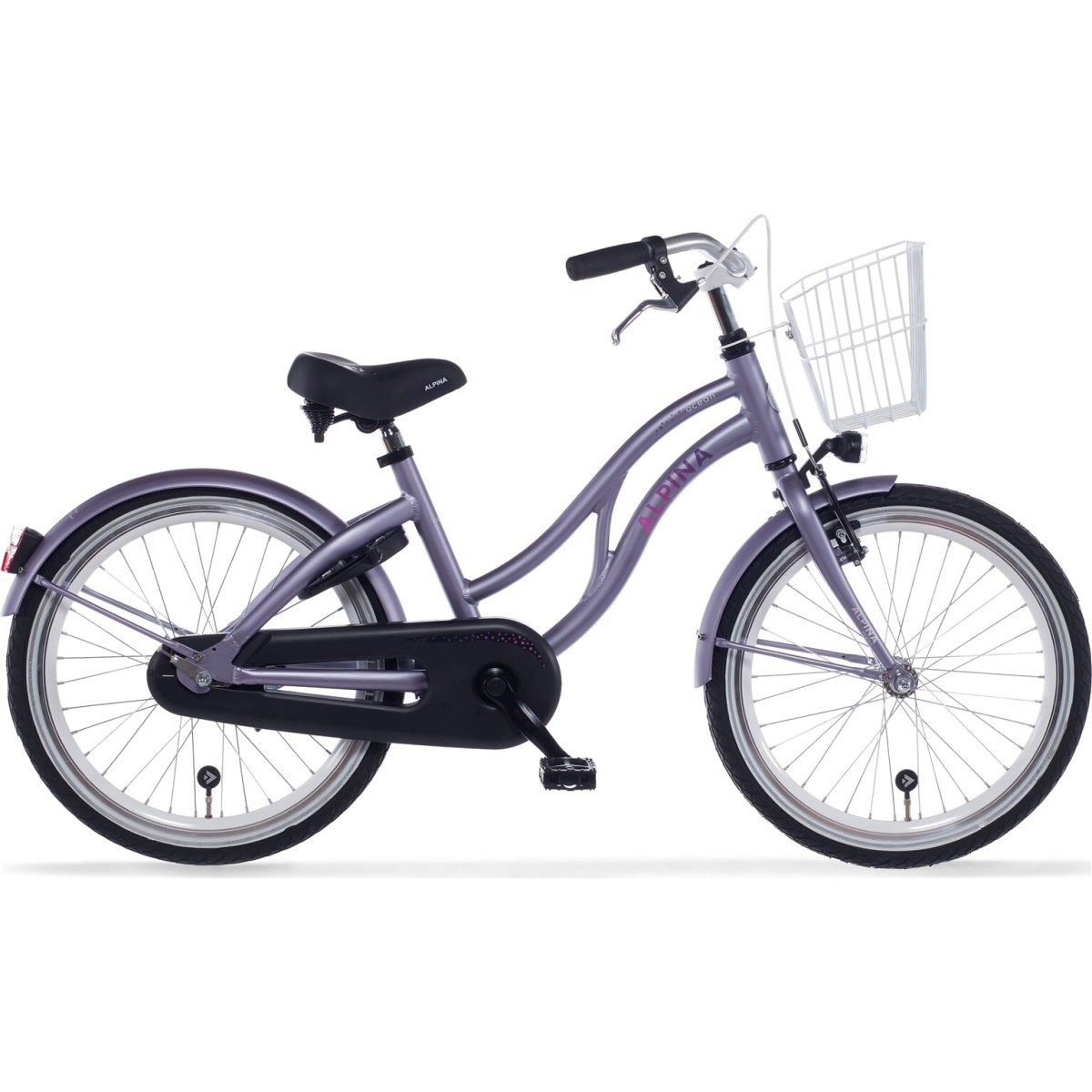 Alpina fiets Ocean Meisjes, 22inch. Kleur: Hazy Lavender Matt. Uitgerust met achter een remnaaf en een V-brake voor, inclusief mandje, aluminium frame. Kleurnummer: YS 7795 Matt.