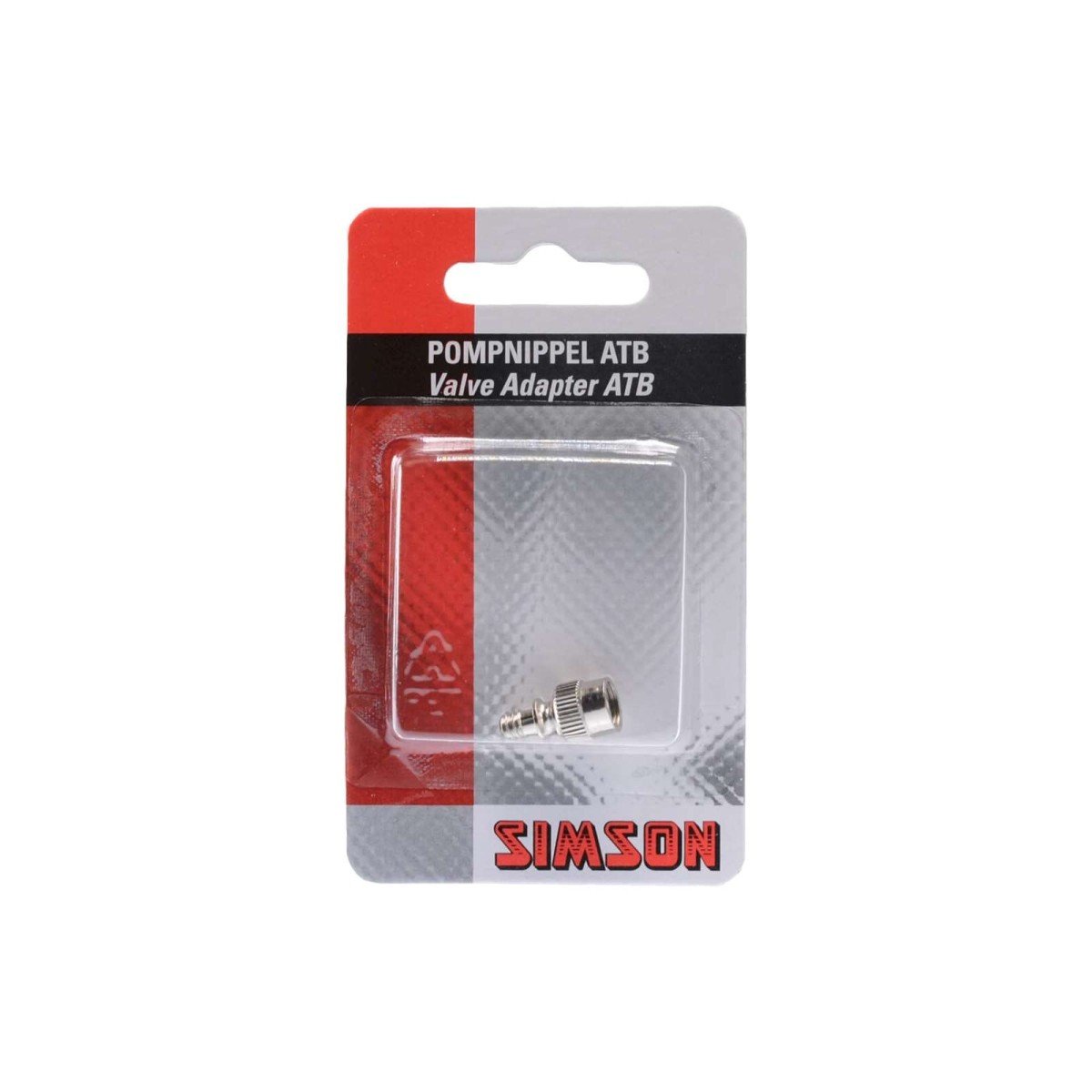 Met de Simson Pompnippel ATB kan een band met een ATB ventiel (autoventiel) opgepompt worden met een gewone fietspomp. De Simson Pompnippel is gemaakt van aluminium voor een optimale levensduur. Draai de Simson pompnippel op het ATB ventiel waarna de band opgepompt kan worden met een gewone fietspomp. Verwijder na het oppompen de pompnippel van het ventiel. De Simson Pompnippel ATB wordt geleverd per stuk.