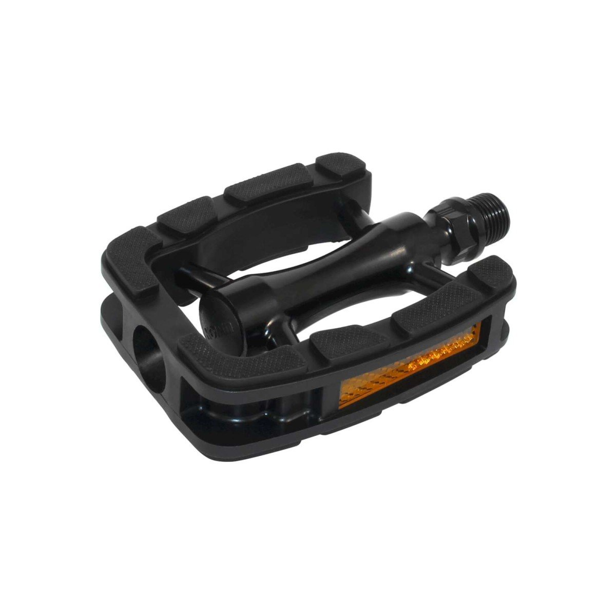 Union pedalen SP-823 alu zwart. 3-K pedaal. Aluminium huis ED black, een zwart polypropeen pedaal kooi en een zwart TPR non-slip. Voorzien van een ED black boron stalen as 9/16, 3/32 kogellager (LBS) en goedgekeurde reflector